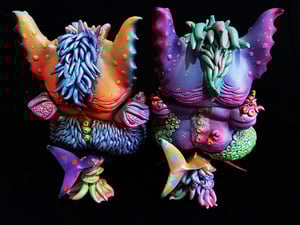 They are 7″ high by 8″ long made of vinyl and epoxy clay.